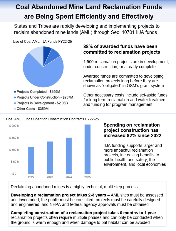 States and Tribes are rapidly developing and implementing projects to reclaim abandoned mine lands (AML) through Sec. 40701 IIJA funds